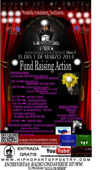 Sábado 1 de marzo 20.00 h. Hip hop art of Poetry-make art not war «Fund raising action»