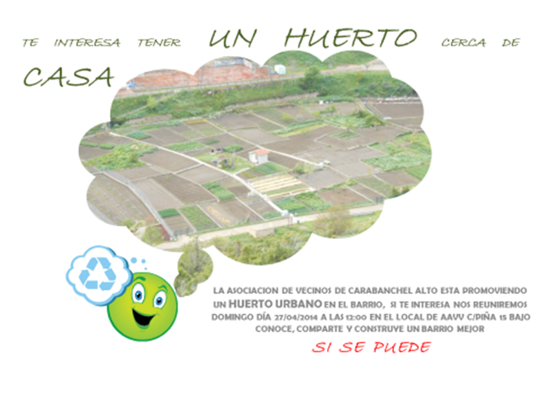 Si tienes interés en participar en la iniciativa de un huerto urbano en el barrio, te convocamos a una primera reunión en la que comenzaremos a desarrollar colectivamente este proyecto.