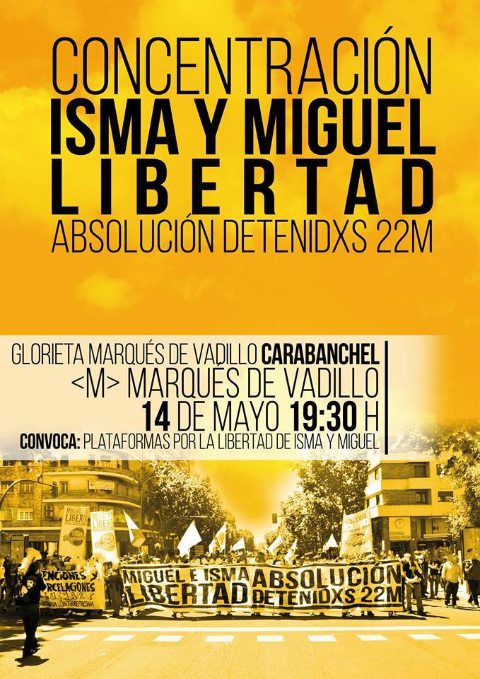 El pasado 22 de Marzo, tras la manifestación convocada por las Marchas de las Marchas de la Dignidad y las posteriores cargas policiales en los alrededores de la Plaza de Colón, fueron detenidas 21 personas. Todas ellas salieron en libertad con cargos el lunes 24, a excepción de nuestro compañero Miguel que entró en prisión preventiva.
