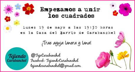 LUNES 19 de MAYO 19.30 H. Quedada Tejiendo Carabanchel: empezamos a unir los cuadrados