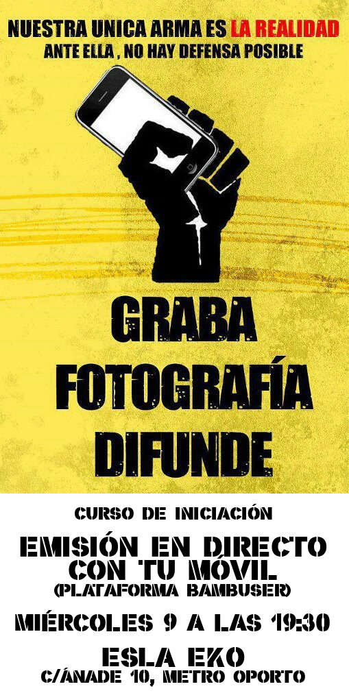 Necesario traer un móvil “listo” con conexión de datos. Utilizaremos la plataforma de streaming Bambuser.
