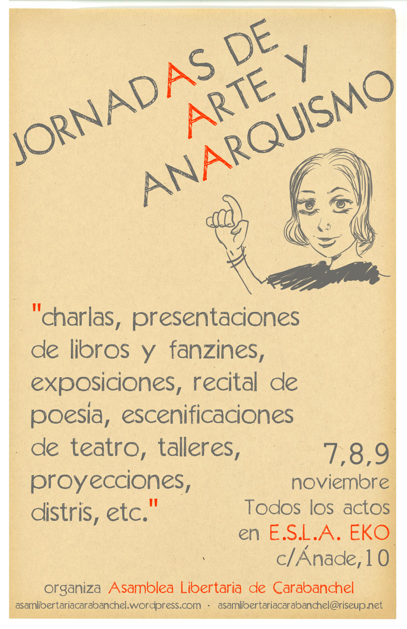 Los días 7, 8 y 9 de noviembre, tendrán lugar nuestras Jornadas Libertarias sobre Arte y Creatividad organizadas por la Asamblea Libertaria de Carabanchel.