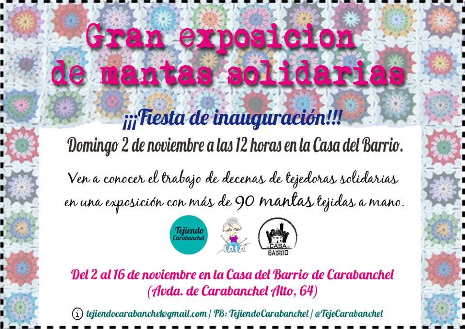 Del 2 al 16 de noviembre se podrá visitar en La Casa del Barrio la exposición de mantas solidarias organizada por Tejiendo Carabanchel. El domingo 2 de noviembre a las 12:00h es la fiesta de inauguración.