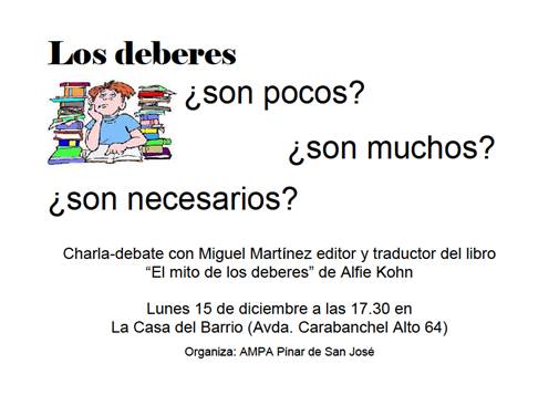 Lunes 15 de diciembre 17:00. – Debate sobre los deberes