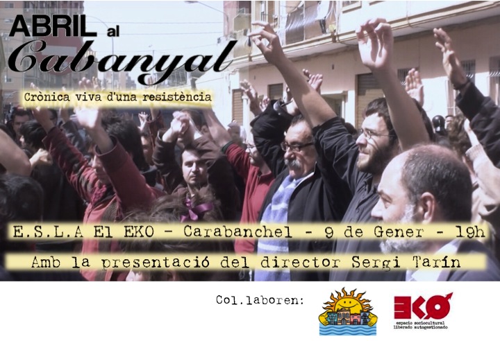 Proyección del documental «Abril al Cabanyal» hoy en el EKO Publicado el enero 9, 2015 por karabanchel Estándar Hoy 9 de enero a las 19 h se proyectará en el EKO el documental «Abril al Cabanyal. Crònica viva d’una resistència» con la presencia del director Sergi Tarín. Comparte esto: Compartir en X (Se abre en una ventana nueva) X Comparte en Facebook (Se abre en una ventana nueva) Facebook Me gusta Cargando... Relacionado