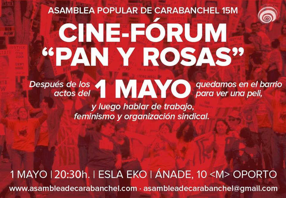 Mañana 1 de mayo a las 20,30 h la Asamblea de Carabanchel proyectará el documental «Pan y rosas» en el EKO con motivo del día del trabajador. Así nos lo cuentan ellos:
