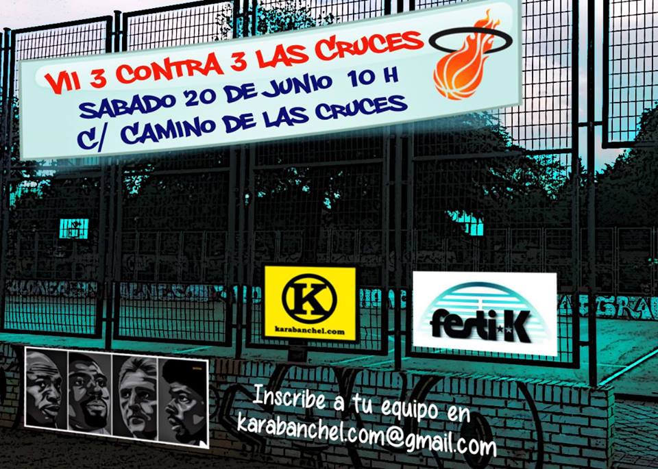 La VII edición del torneo de baloncesto 3 contra 3 Las Cruces se celebrará el 20 de junio en las instalaciones deportivas «María Inmaculada» (C/ Camino de las Cruces). El torneo forma parte de las XII edición del Festi-K.