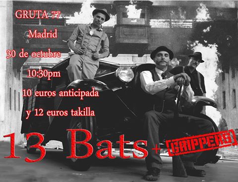 El próximo viernes 30 de octubre el grupo de rockabilly 13 Bats actuará el Gruta 77, acompañados de Grippers.