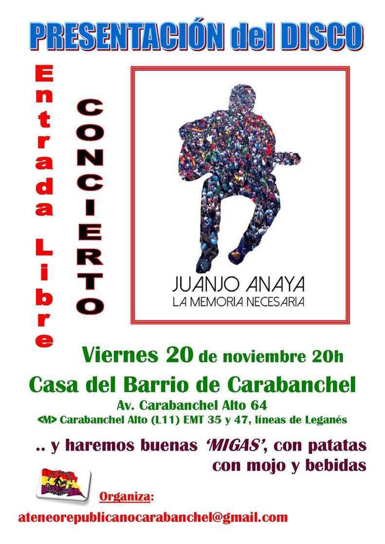El cantautor Juanjo Anaya presentará su primer disco «La memoria necesaria» el viernes 20 de noviembre en La Casa del Barrio (Avda. de Carabanchel Alto 64), compuesto por canciones revolucionarias que surgieron de las luchas populares.