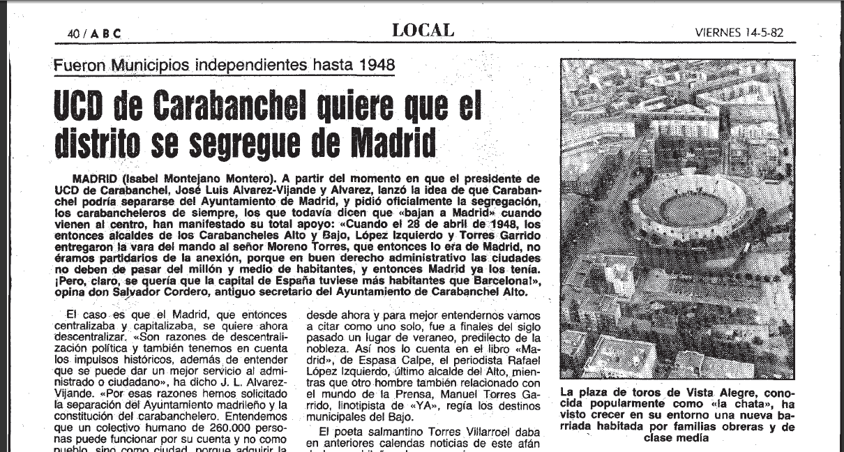 UCD de Carabanchel quiere que el distrito se segregue de Madrid (1982)