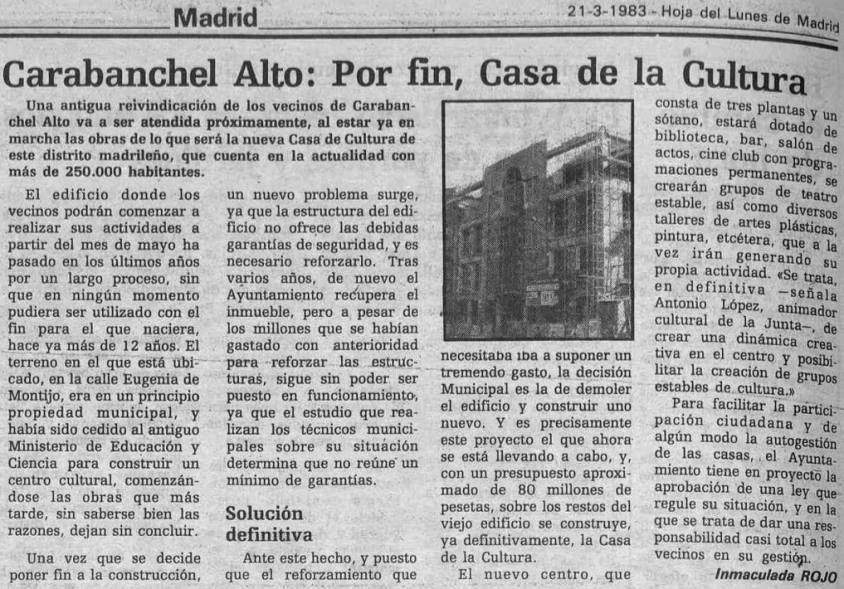 Carabanchel Alto, por fín, la Casa de la Cultura Hoja del Lunes de Madrid el 21 de marzo de 1983 febrero 14, 2016 at 844 × 589 in Casa de la cultura Anterior Me gusta Cargando...