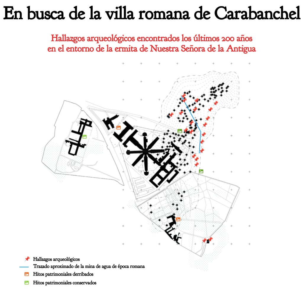 En busca de la villa romana de Carabanchel Mapa interactivo con los hallazgos arqueológicos encontrados los últimos 200 años en el entorno de la ermita de Nuestra Señora de la Antigua Otros hallazgos arqueológicos: Comparte esto: Compartir en X (Se abre en una ventana nueva) X Comparte en Facebook (Se abre en una ventana nueva) Facebook Me gusta Cargando...