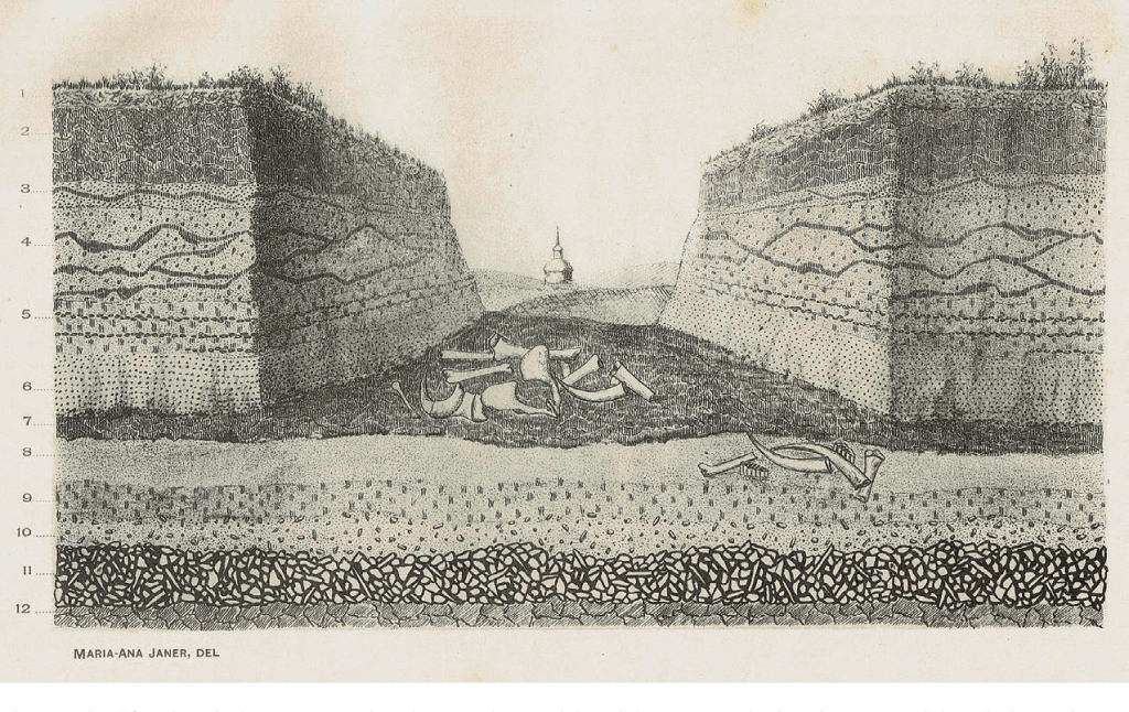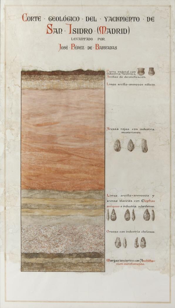 Corte geológico del yacimiento de San Isidro levantado por José Pérez de Barradas (1926)