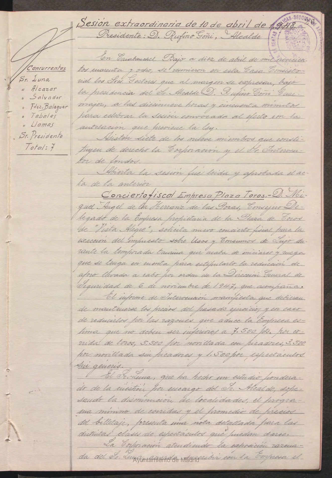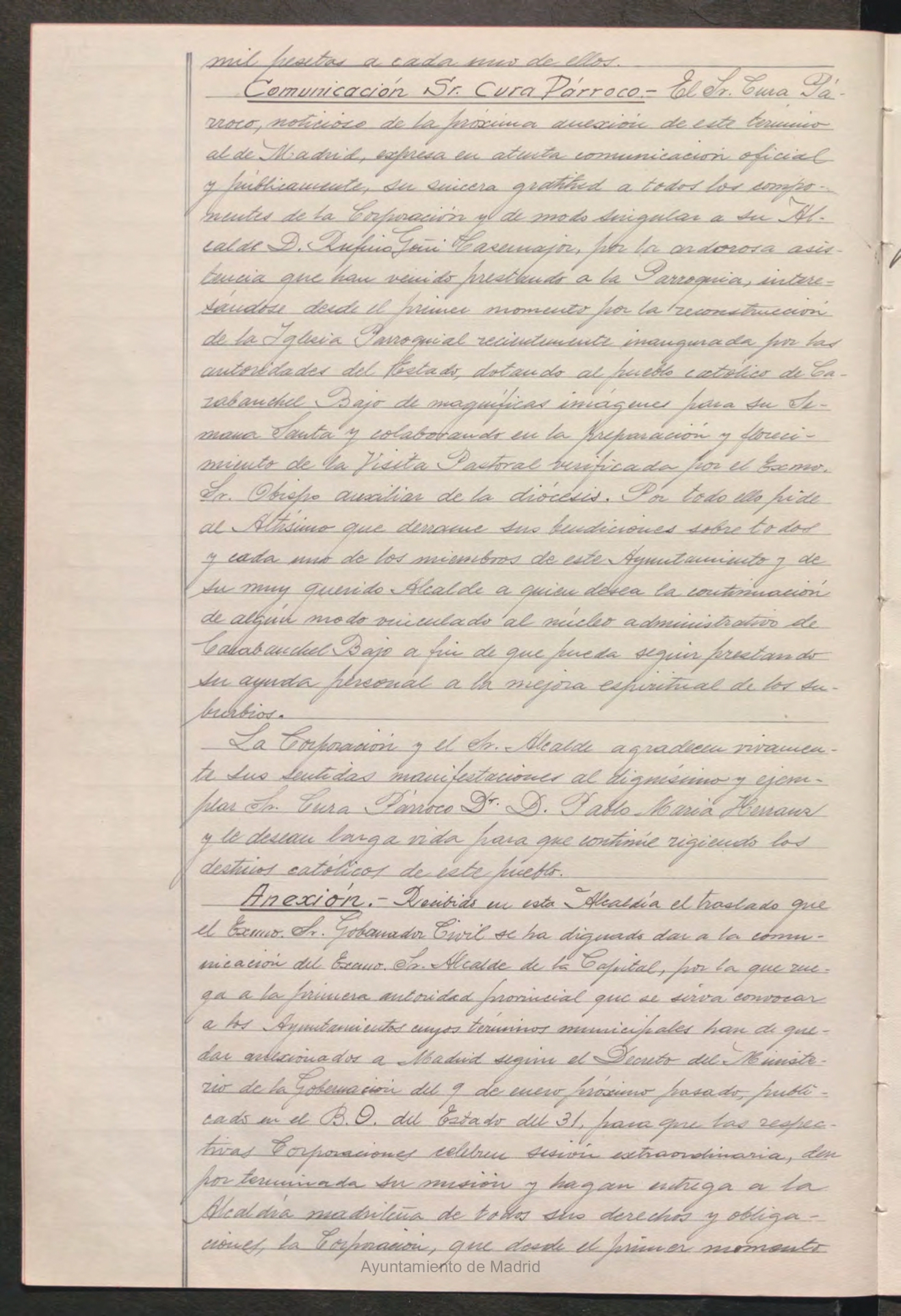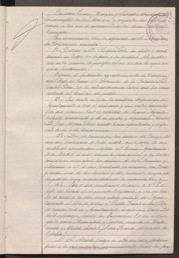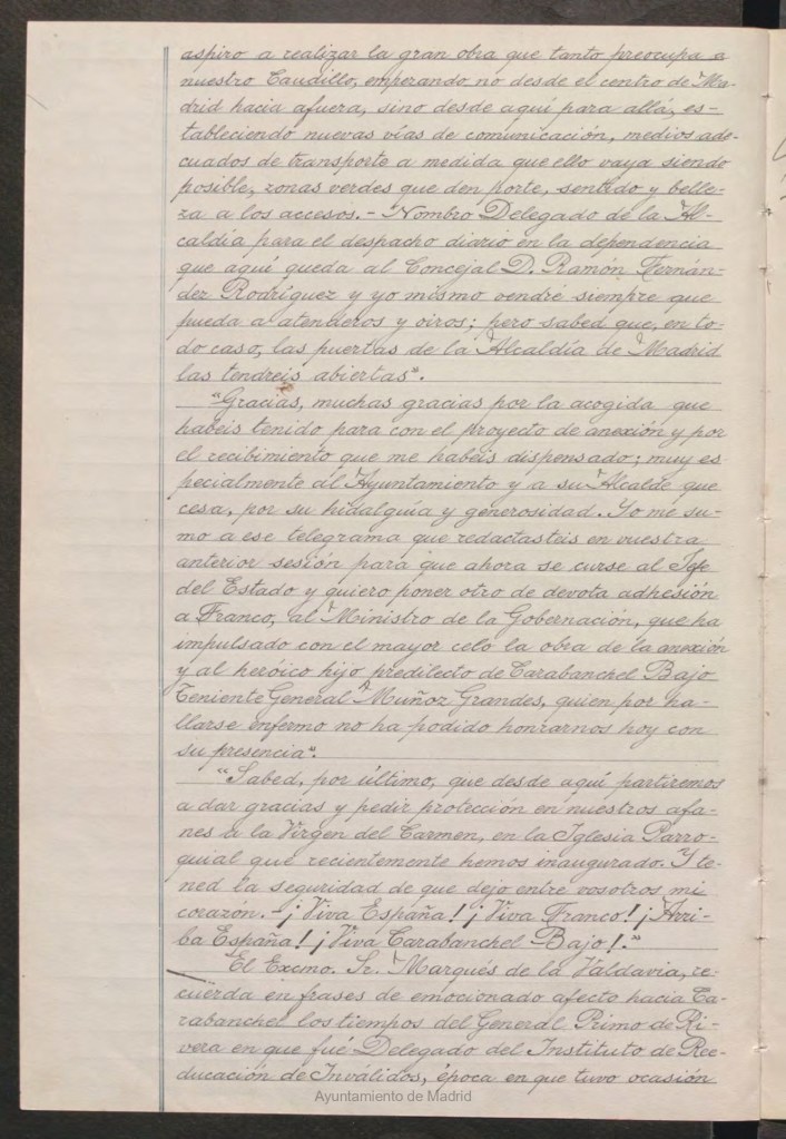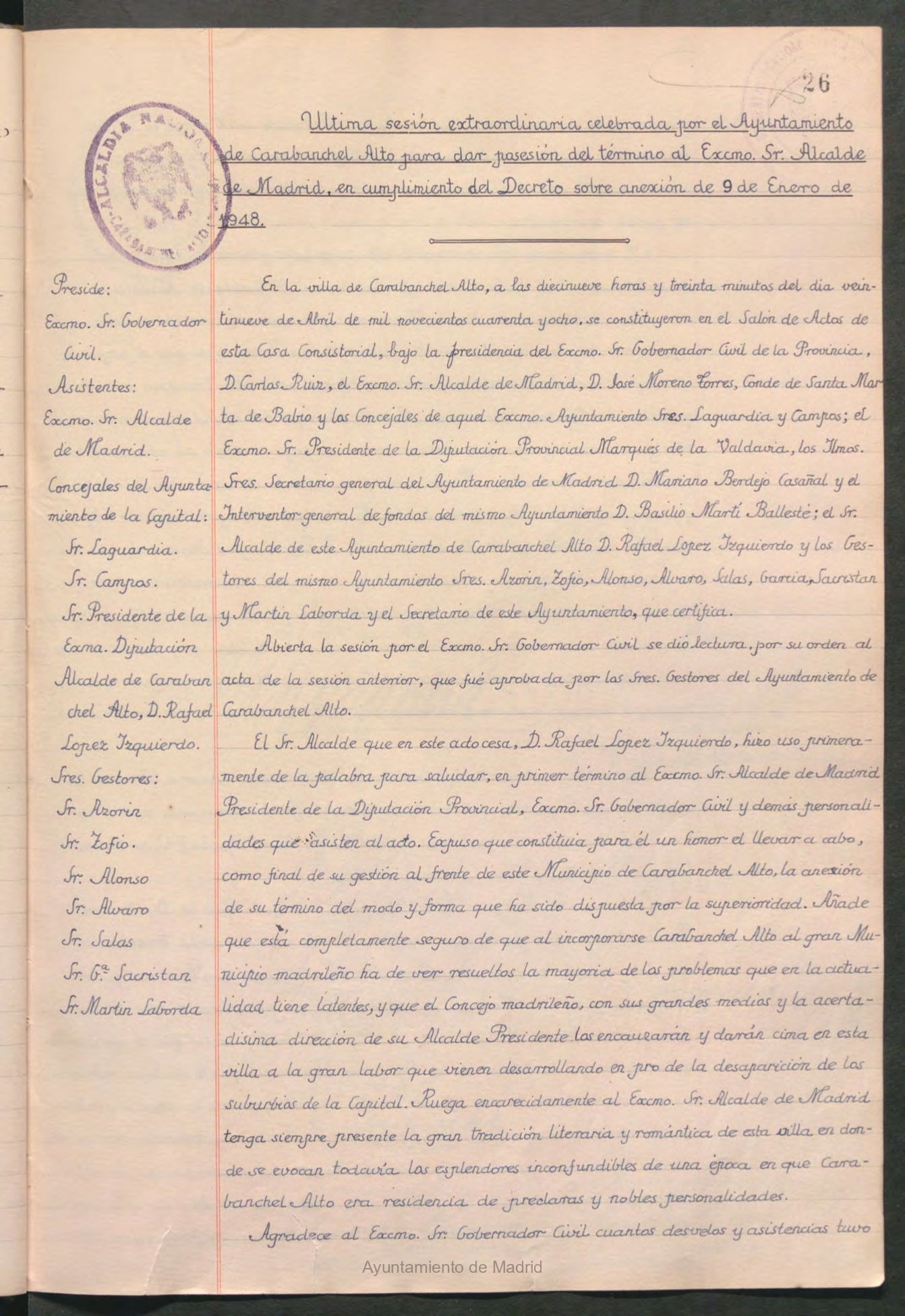 Información sobre la anexión de Carabanchel Bajo a Madrid en el acta de la sesiones plenarias del Ayuntamiento de Carabanchel Bajo del 10 y el 27 de abril de 1948