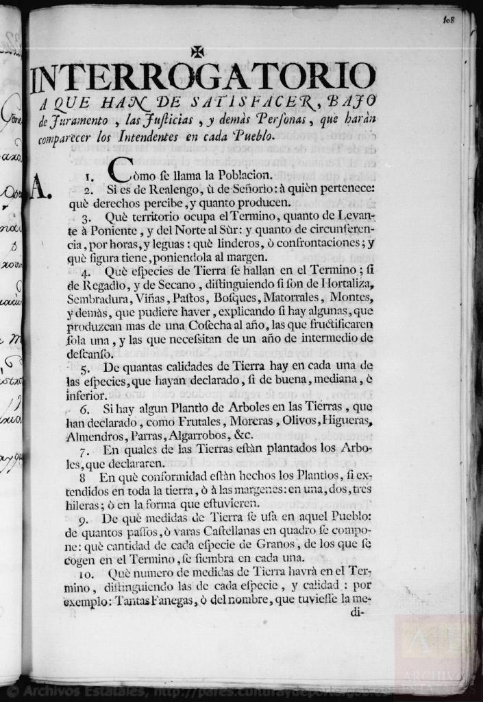 Página de las Relaciones Topográficas de los pueblos de España (1575)