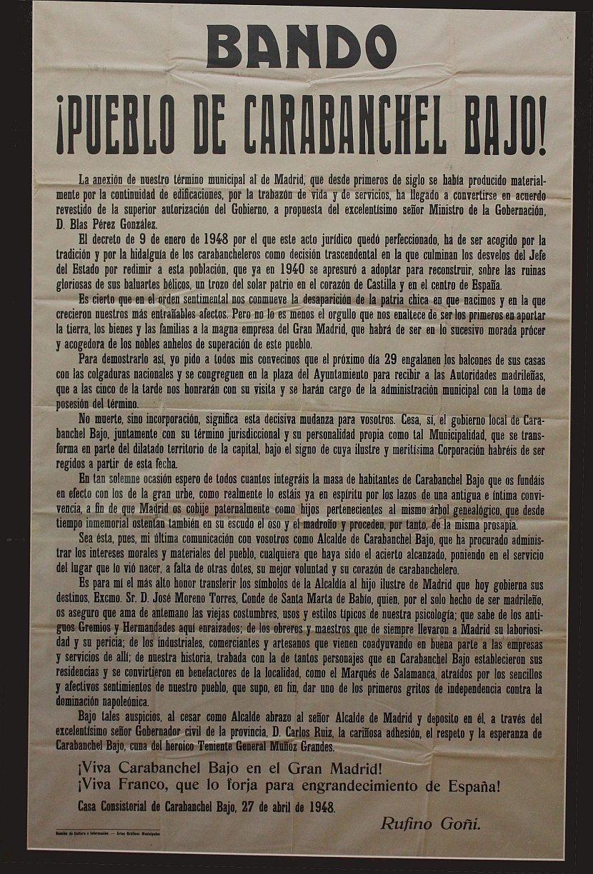 Último bando del alcalde de Carabanchel Bajo (27 d abril de 1948)