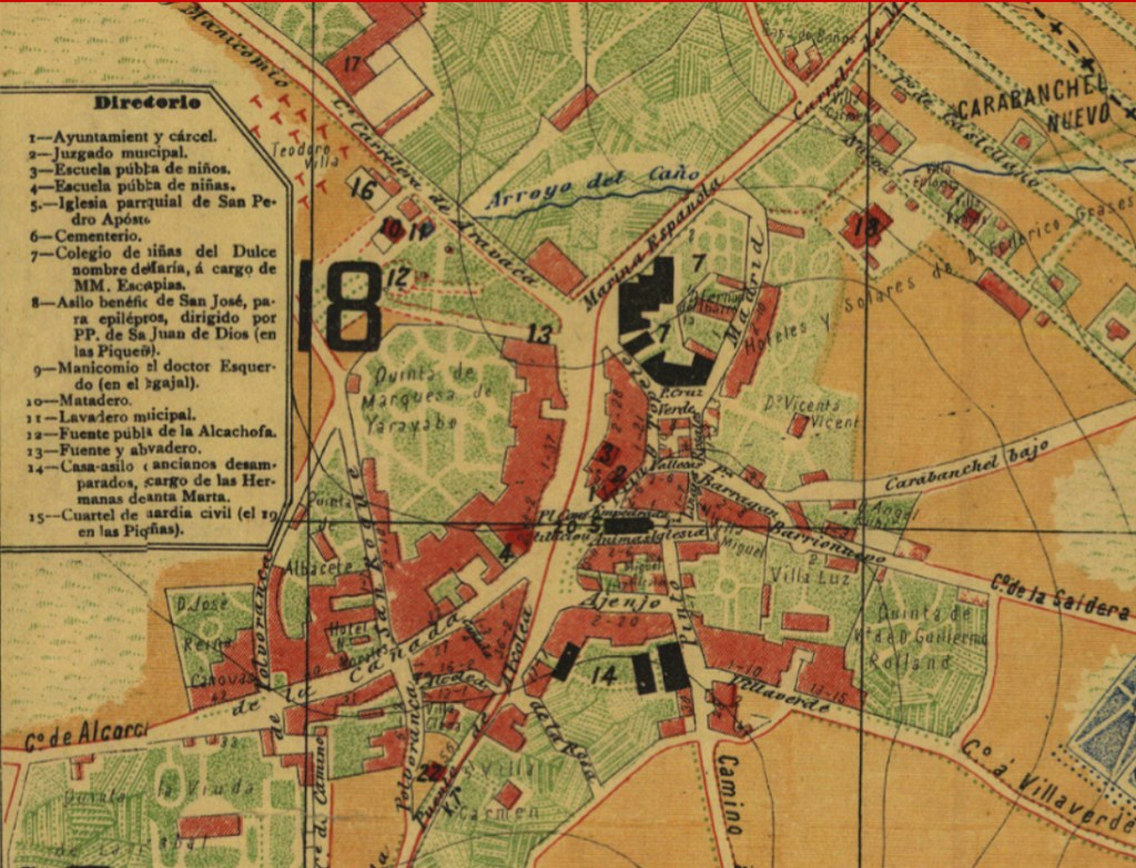 Casco histórico de Carabanchel Bajo en el plano de Facundo Cañada de 1900
