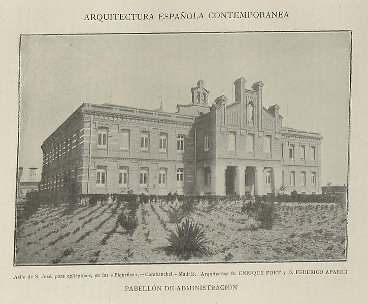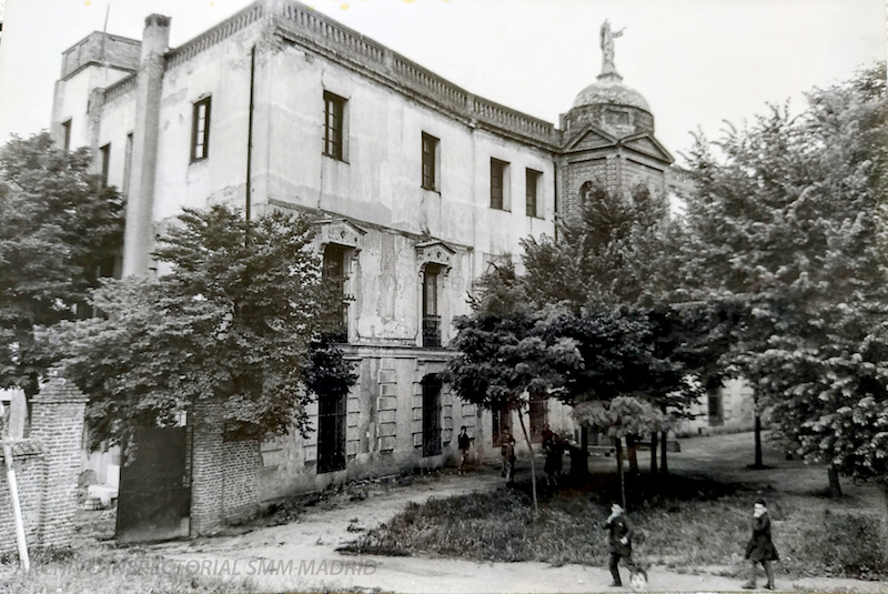 Fuente de estilo neoclásico en la tapia de los Salesianos de Carabanchel Alto