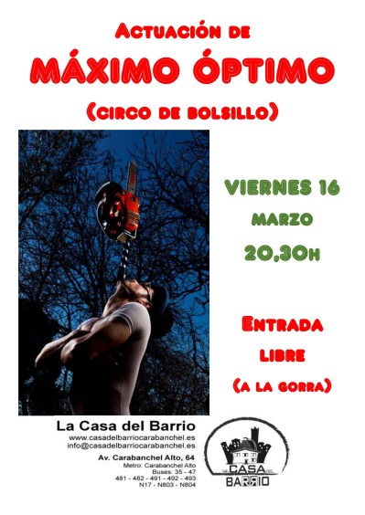 Viernes 16 a las 20,30 h: Circo de bolsillo con Máximo Óptimo
