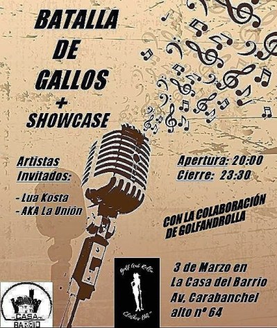 Sábado 3 a las 20,30 h: Concierto de rap: Batalla de Gallos + Showcase (Lua Kosta, aka La Unión)