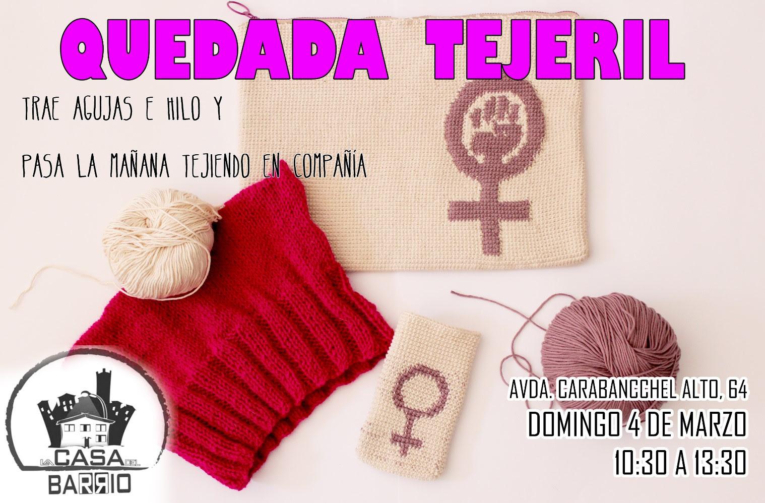 El próximo domingo 4 de marzo por la mañana en la Casa del Barrio estaremos tejiendo en compañía.
