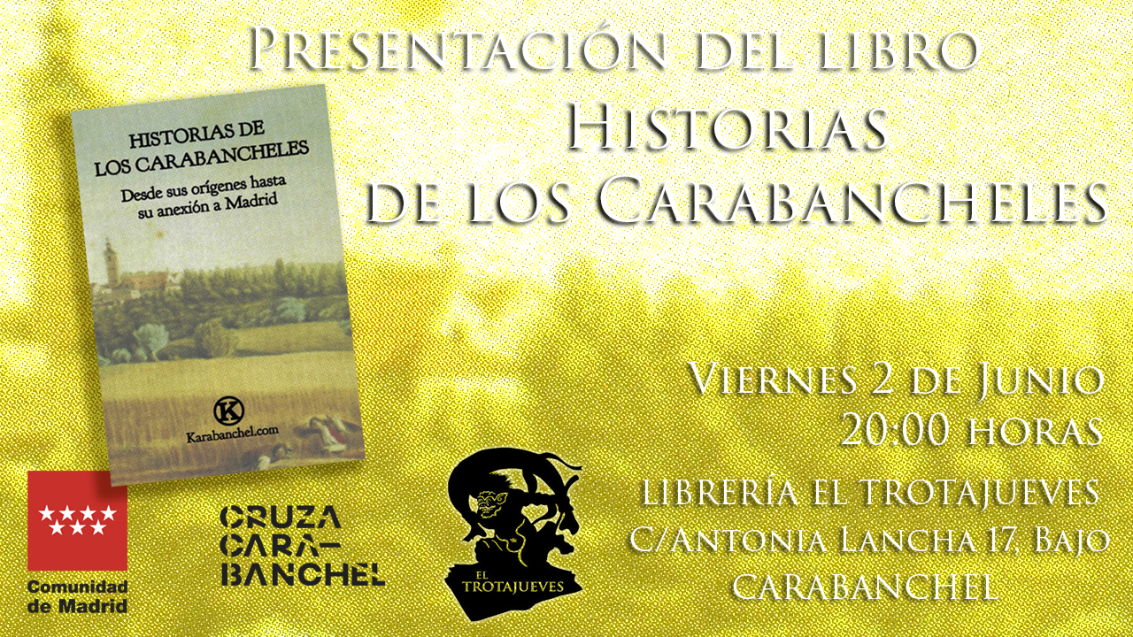 El próximo viernes 2 de junio a las 20 h en la Librería Trotajueves (C/Antonio Lancha 17) tendrá lugar una nueva presentación del libro «Historias de los Carabancheles. Desde sus orígenes hasta su anexión a Madrid» dentro de la programación del Festival Cruza Carabanchel.