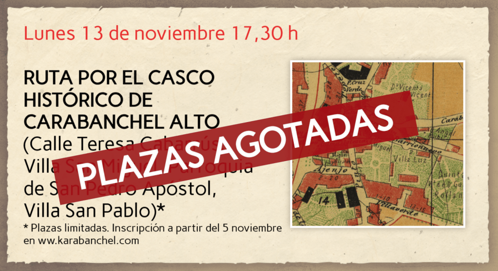 Las plazas para las rutas por el casco histórico de Carabanchel Alto y la finca de Las Piqueñas se han agotado. Gracias a todos por el interés.