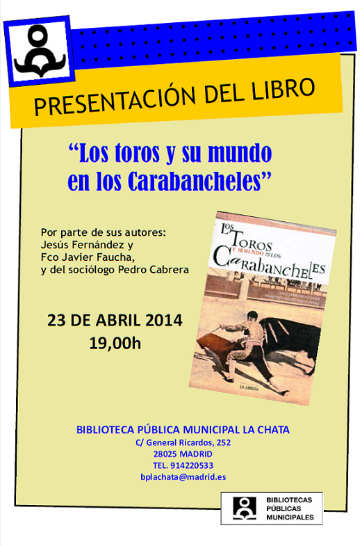 Presentación de libro «Los toros y su mundo en los Carabancheles» en la biblioteca La Chata el 23 de abril